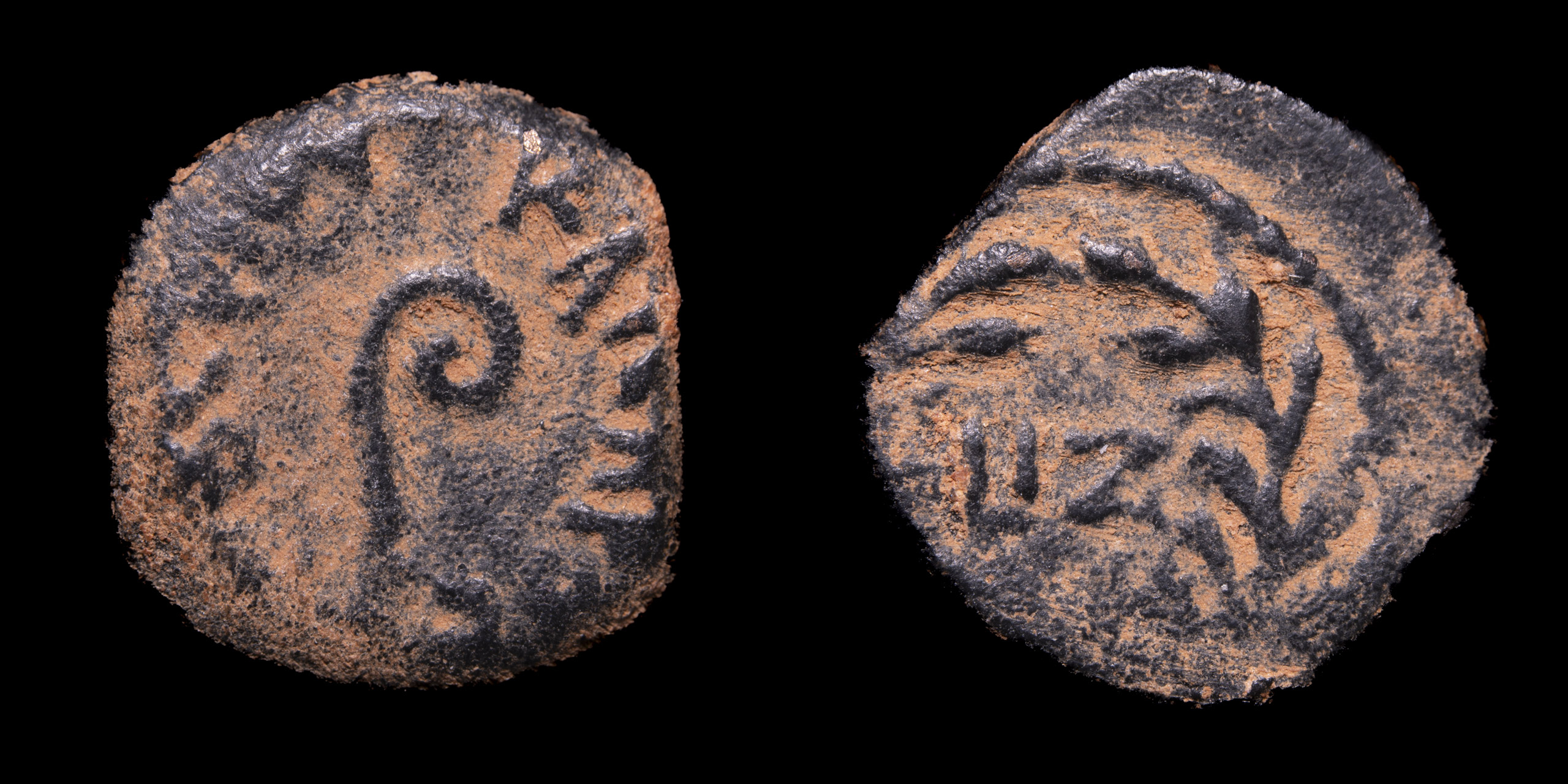 Lote 705. Judaea, Procurators. Pontius Pilate (under Tiberius 26-36AD) Prutah. Jerusalem mint, year 17 (30/31AD). Bronze; 19mm; 1.90g. A: TIBEΡIOY KAICAΡOC, lituus (Augur’s staff). R: Date “LIZ” (17) within wreath. Note: This prutah was cast in the year Jesus died. Interestingly, this type was allegedly found placed on the eyes of Jesus in the Shroud of Turin. SNG ANS 373; AJC II 23; Hendin 649. (VF+). Est. 100-150