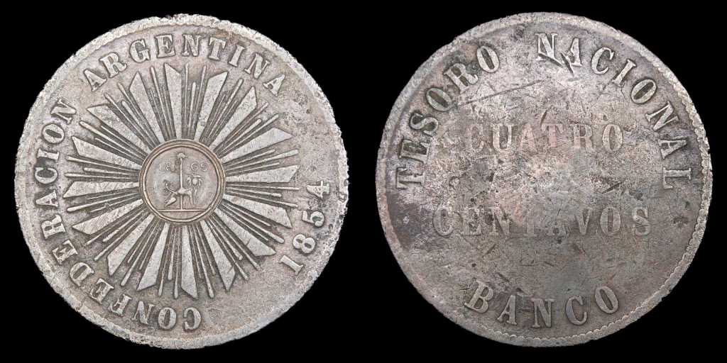 En la presente subasta traemos dos ejemplares (ambos con importante pedigree) de moneda contramarca sobre moneda argentina, siendo la primera una pieza de 4 Centavos de la Confederación Argentina 1854 con resello de Paraguay, fecha 1869 (hacia finales del conflicto de la Triple Alianza). La segunda pieza (inédita en Pratt), se trata de un 2 Reales de Buenos Aires 1855, con resello paraguayo fechado 1858. Ambas piezas seguramente fueron así marcadas para suplementar las emisiones locales existentes con circulante extranjero al que se le daba el carácter «local» a través de resellos, por falta de pericia de los técnicos para la realización de cuños.