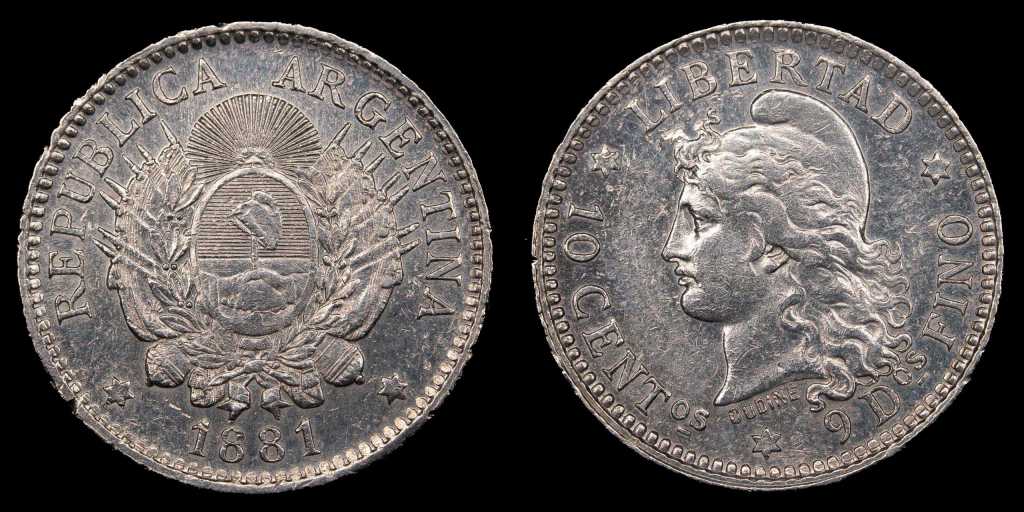 En esta subasta, también les traemos un «Argentino» de los más buscados por los coleccionistas: el del año 1889, del cual se emitieron 403.712 unidades, y que además tiene una particularidad que la hace una pieza única, está encapsulada y certificada por NGC en MS65, Top Pop, es decir la mejor registrada hasta el momento por dicha casa certificadora.