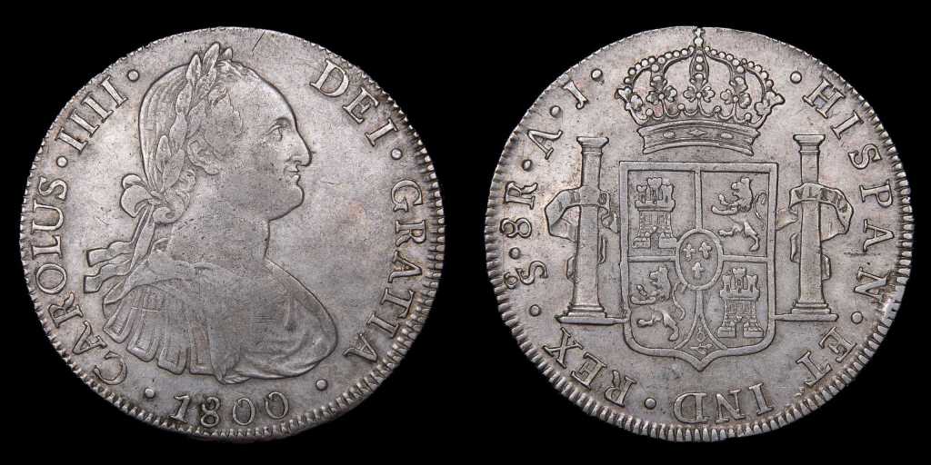 Lote 7. Santiago. Carlos IV (1788-1808) 8 Reales 1800 AJ. Plata 896; 39mm; 26.57g. KM51 (AU)
