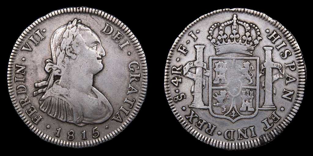 Lote 10. Santiago. Fernando VII (1808-1833) 4 Reales 1815 FJ. Plata 896; 35.0mm; 13.20g. KM67 (VF+) Limpiada