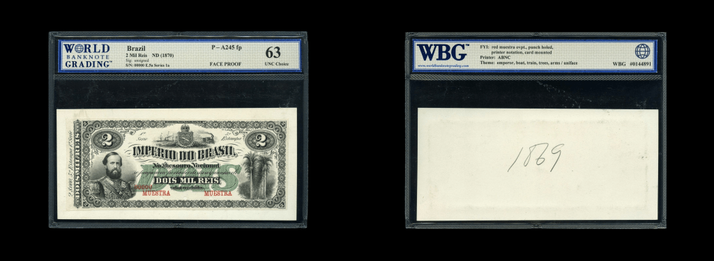 También tenemos piezas interesantísimas de Brasil en nuestra Session 3 dedicada a notafilia, les dejamos para que vean los siguientes Especimenes, Muestras y Pruebas: