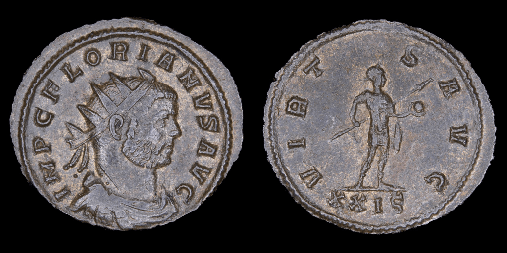 Luego de la muerte de Galieno, tenemos el período llamado de los emperadores Ilirios, justamente destacando el origen de estos. En la presente subasta traemos a los escasos Tácito y Floriano. El primero, un viejo cónsul de familia senatorial nombrado a la muerte de Aureliano, y luego de su inesperadda muerte por cuestiones de su edad, a su hermano Floriano, quien fue finalmente vencido por el general Probo luego de un brevisimo reinado.