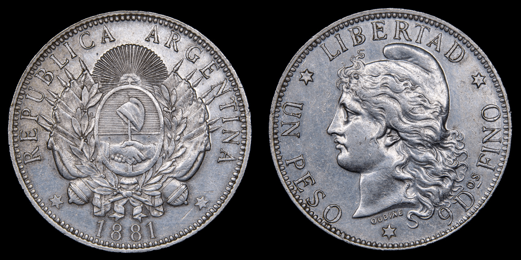 En la presente subasta traemos una selección de importantes piezas de la serie llamada «Patacón», primer serie nacional argentina establecida por la Ley 1130, que fue sancionada el 5 de noviembre de 1881.
