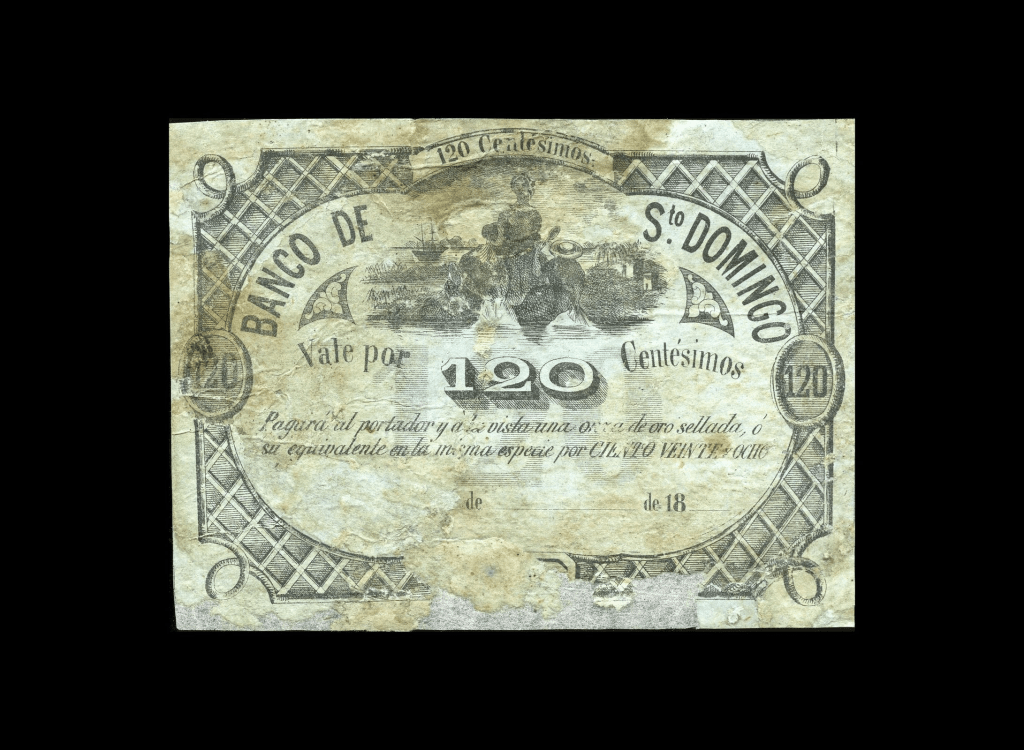 Lote 2093. Uruguay. Banco de Santo Dimingo, Soriano. 20 Centésimos ND1858 Remainder. Not in Pick (VG) Restaurado. Billete sumamente raro y escaso