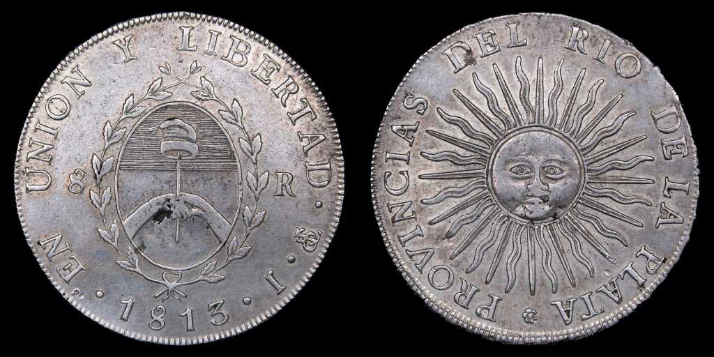 Luego de las victorias militares en Tucumán (25 de septiembre de 1812) y Salta (20 de febrero de 1813), y con la toma a los realistas de la ceca de Potosí, la Asamblea del Año XIII ordena acuñar mediante la ley el 13 de Abril de 1813 la nueva moneda con simbología patriótica, manteniendo peso y ley de las emisiones españolas anteriores, siendo esta la primera emisión independiente en oro y plata en América.