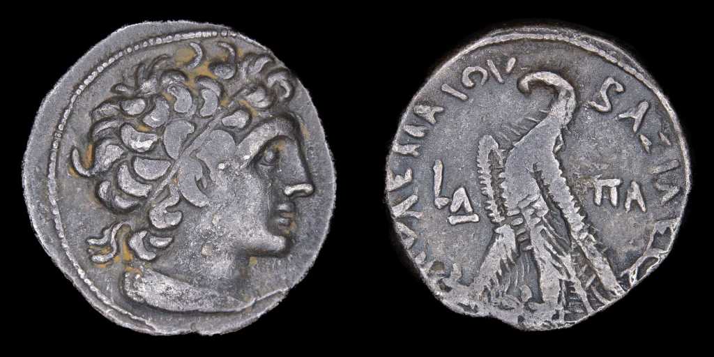 Para finalizar con esta pequeña selección tendremos un tetradracma de plata acuñado en lo que podriamos llamar el último bastión de los reinos helénicos: Alejandria. Esta pieza en particular esta acuñada por Ptolomeo XII, el impopular faraón de Egipto y padre de la famosa Cleopatra. Vemos las piezas a continuación: