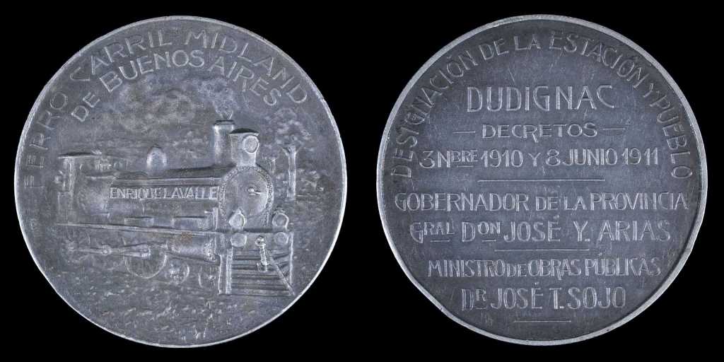 Continuando con distintas regiones de nuestro país, tenemos la medalla de la inauguración del ramal Clodomira-La Banda, que integró el centro de Santiago del Estero con la red ferroviaria nacional. La Banda, ubicada frente a la capital provincial, era nodo estratégico para el transporte de algodón, madera y ganado: